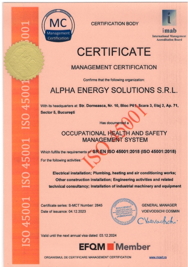 - ✅ Certificare ISO 45001 – siguranța muncii