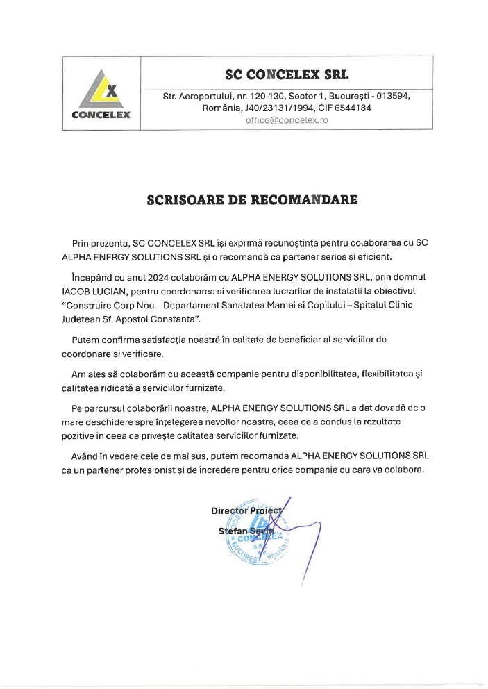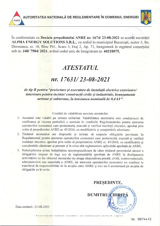 - ✅ ANRE – Proiectare și executare de instalații electrice pentru construcții civile și industriale