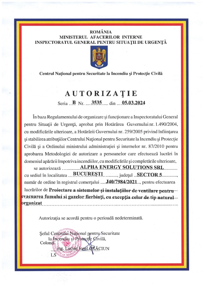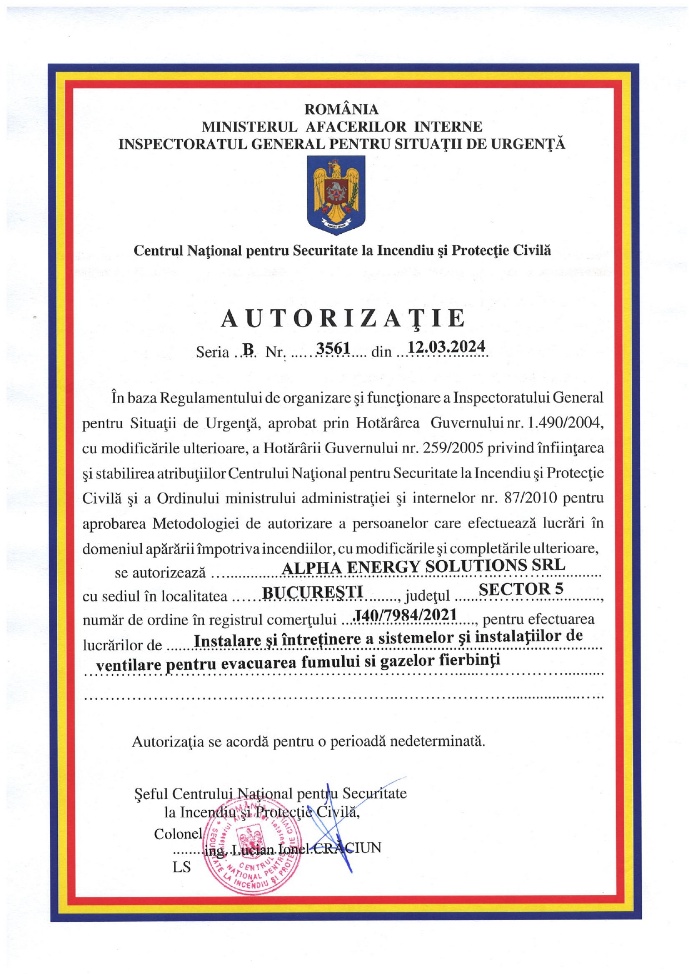 - ✅ IGSU – Instalare și întreținere a sistemelor și instalațiilor de ventilare pentru evacuarea fumului și gazelor fierbinți
